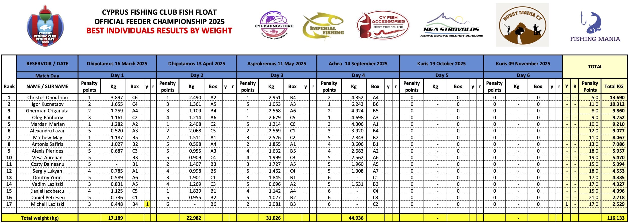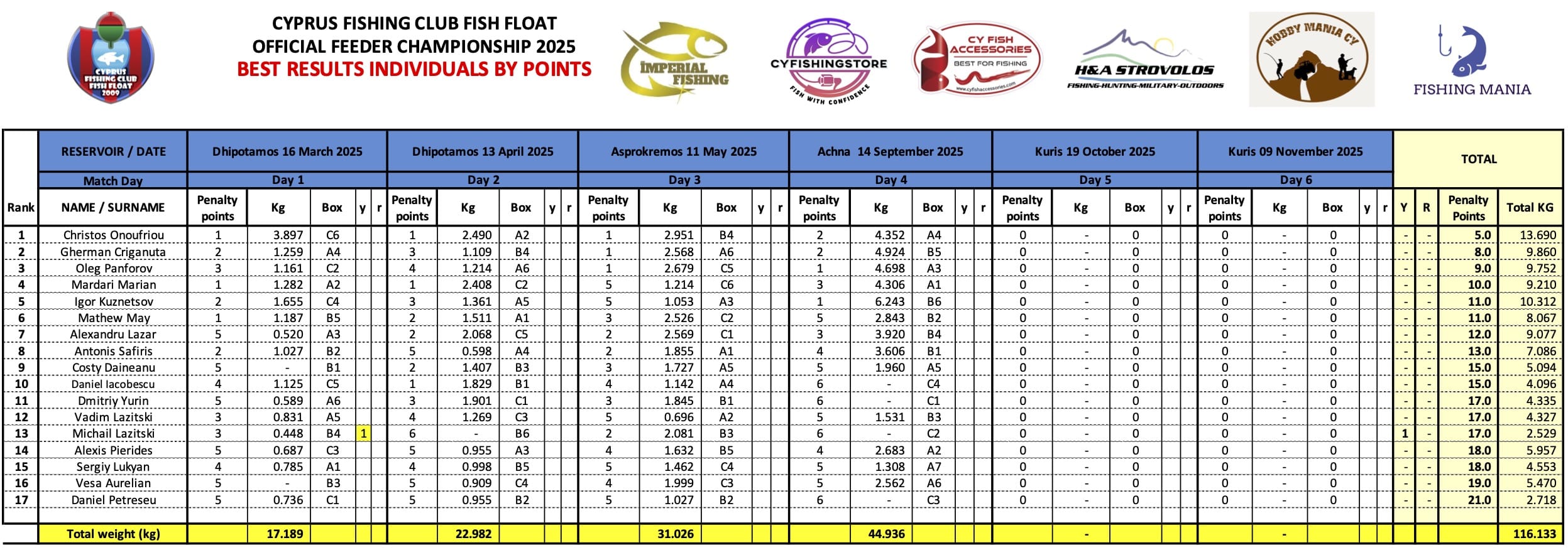 FEEDER 2025 Individuals competitions: 16.03.25 – Round 1 Dhipotamos13.04.25 – Round 2 Dhipotamos11.05.25 – Round 3 Asprokremos14.09.25 – Round 4 Asprokremos19.10.25 – Round 5 Kuris09.11.25 – Round 6 Kuris FLOAT 2025 Individuals competitions: 30.03.25 – 1 Round Dhipotamos Dam27.04.25 – 2 Round Dhipotamos Dam25.05.25 – 3 Round Kuris Dam05.10.25 – 4 Round Kuris Dam23.11.25 – […]