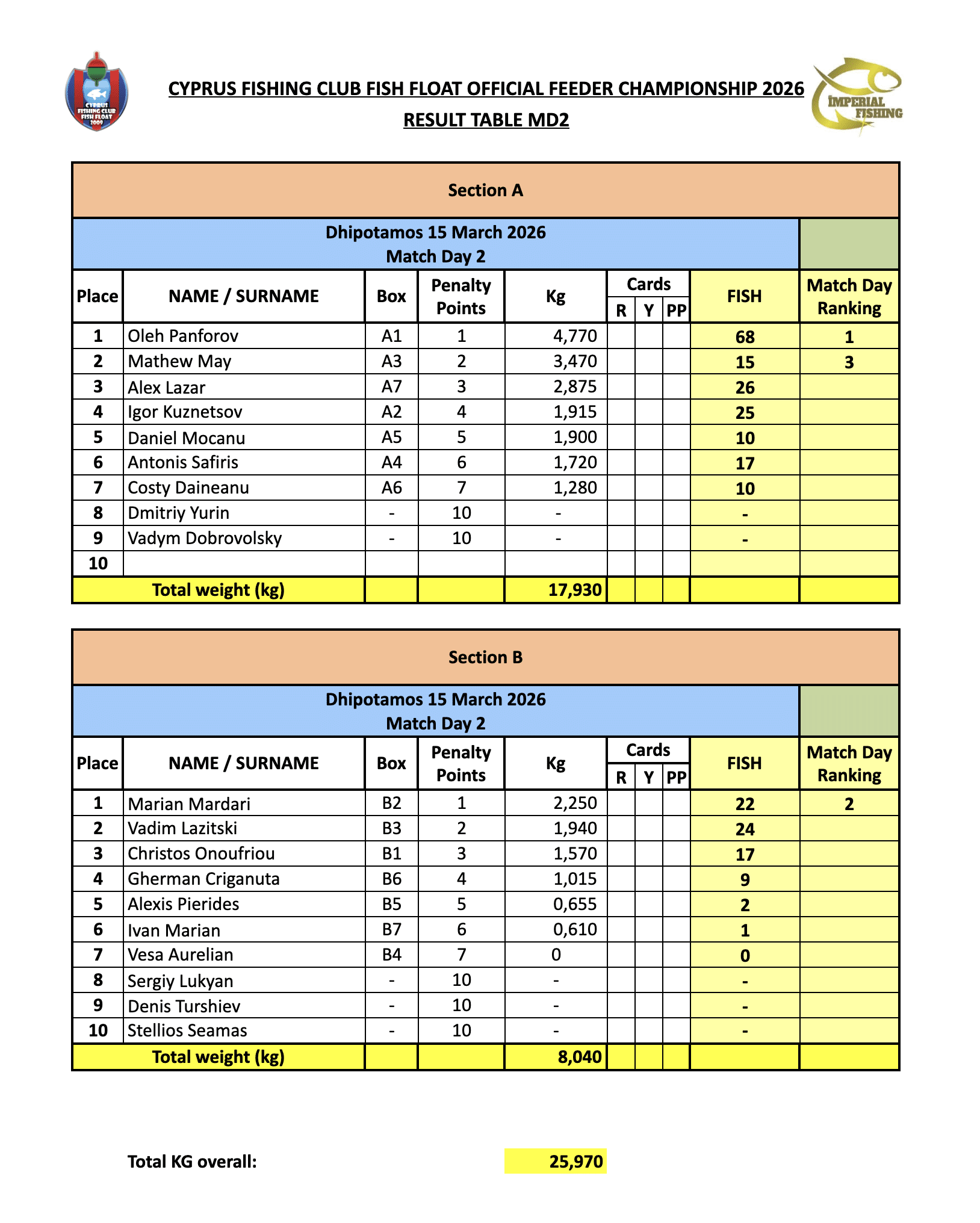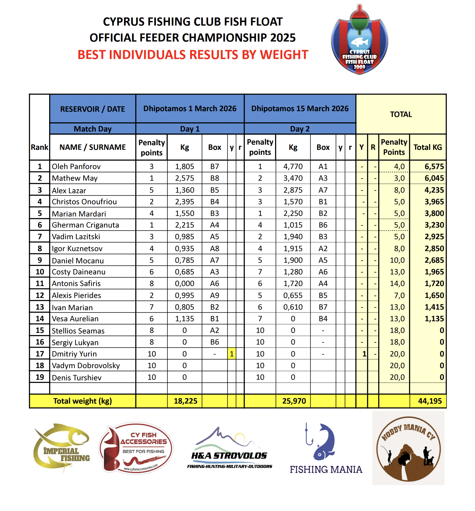 On March 15, the second round of the Cyprus Fishing Club Fish Float Official Feeder Championship took place at the Dhipotamos dam in Cyprus.